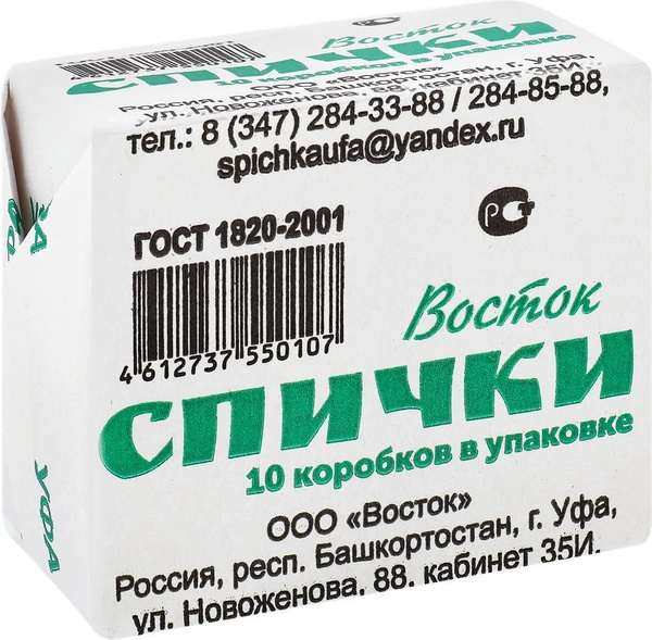 УФ-10 Спички бытовые Уфимские, 1упак(10шт) /100 29.5 507