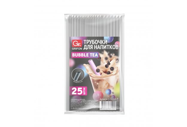 GRIFON Трубочка для напитков, 21 см, диаметр 0,5 см со сгибом, 100 шт. п/э упаковке |