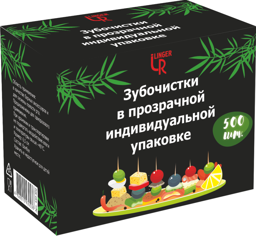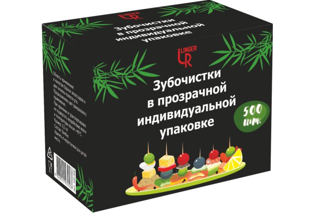LINGER Зубочистки бамбуковые в прозрачной индивидуальной упаковке, 500 шт. /50 |